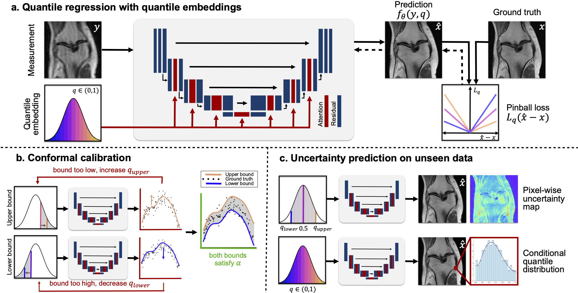 As we push our cameras, microscopes, and telescopes to and past their limits, can we still trust these devices enough for scientific and medical applications? Computational imagers rely on algorithms and priors to extract signals and insights from noisy, underdetermined, aberrated, and corrupted measurements. However, these algorithms can be prone to hallucinating, i.e., producing realistic-looking features that are not truly present in the sample. In our work, we leverage uncertainty quantification based on conformal prediction to quickly and accurately predict confidence intervals for recovered images. In the projects below, we show how to quickly and efficiently add uncertainty prediction to any imaging inverse problem, and how to use uncertainty in the loop to speed up adaptive microscopy. These projects are a step towards trustworthy and robust computational imagers.